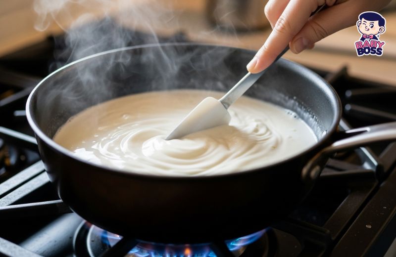 Bước 2: Nấu Hỗn Hợp Nền Kem Sữa (Custard)