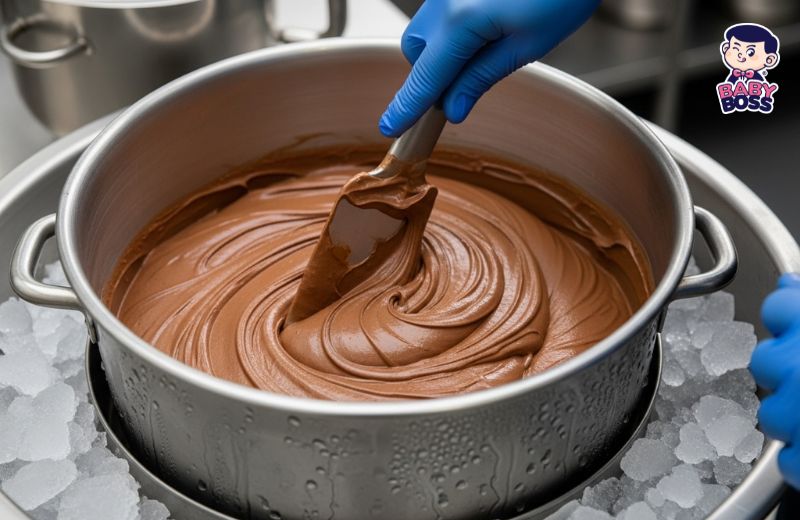 Ít Không Khí Hơn: Quá trình đánh và làm lạnh chậm rãi giúp kết cấu kem đặc dẻo, không bông xốp.