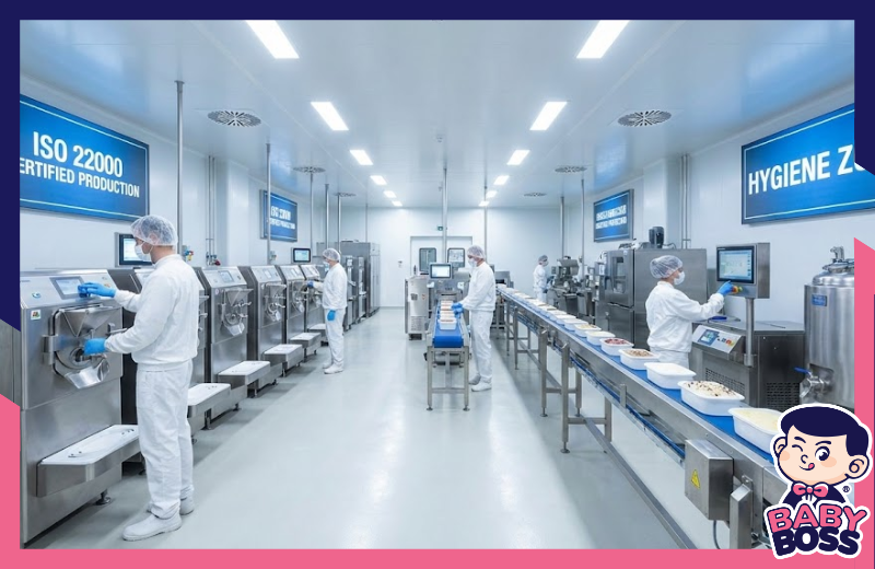 Dịch vụ Gia công Kem Ý Gelato (OEM/ODM) của Baby Boss chính là chìa khóa giải quyết bài toán này. Bạn chỉ cần ý tưởng, chúng tôi sẽ hiện thực hóa quy trình sản xuất.