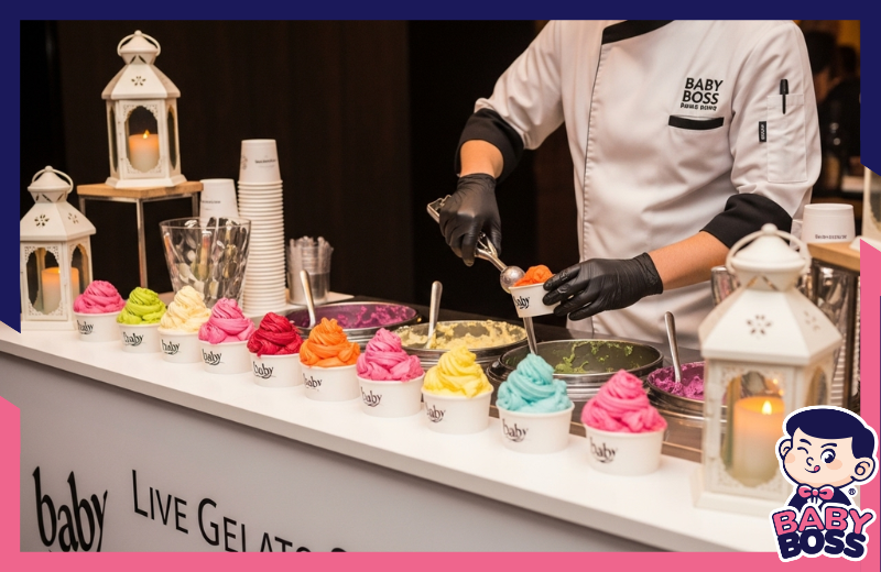 Gelato Baby Boss, kem Ý chuẩn quốc tế làm từ nguyên liệu tươi, ít béo, vị tự nhiên, hoàn hảo cho tiệc tri ân.
